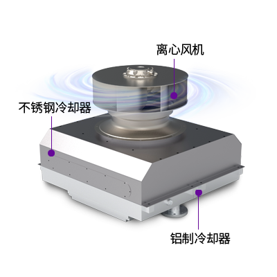捷豹冷却系统冷却系统采用润滑油冷却、冷却水冷却、中间冷却、后部冷却集成一体式设计,保证整机各系统冷却效果的同时减小空间,结构紧凑。其中中间冷却和后部冷却分别采用了不锈钢冷却器+铝制冷却器二级冷却方式,由主机排出的高温压缩空气先经过不锈钢冷却器预冷,再进入铝制冷却器,保证铝制冷却器在可接受温度下安全可靠的工作。搭配低转速、低噪音、高风压离心式风机,使整机各系统在合理温度范围运行,提高机器可靠性。