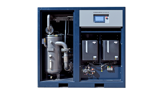 双变频器智能控制采⽤全新的变频器, 独创的控制算法使得两个变频器间互相协调, 有序且稳定地控制空压机,为您提供持续稳定的压缩空⽓。